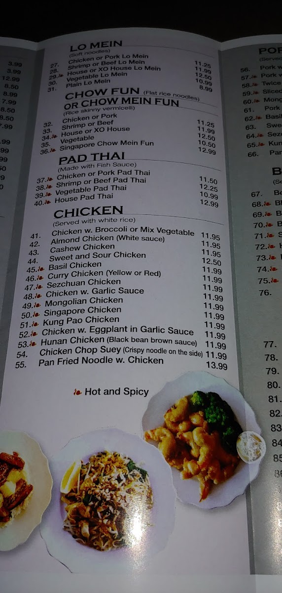 - Noodle dishes like Chicken Lo Mein Noodles and Singapore Noodles