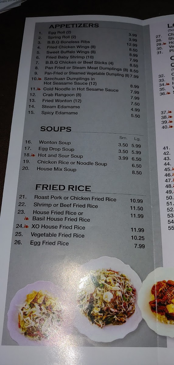 - Appetizers such as Fried Wonton, Pork Egg Rolls, and Eggrolls